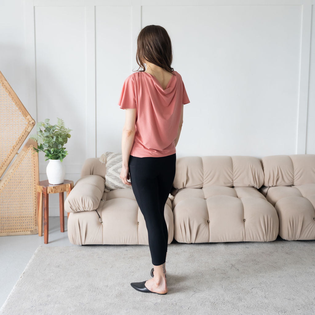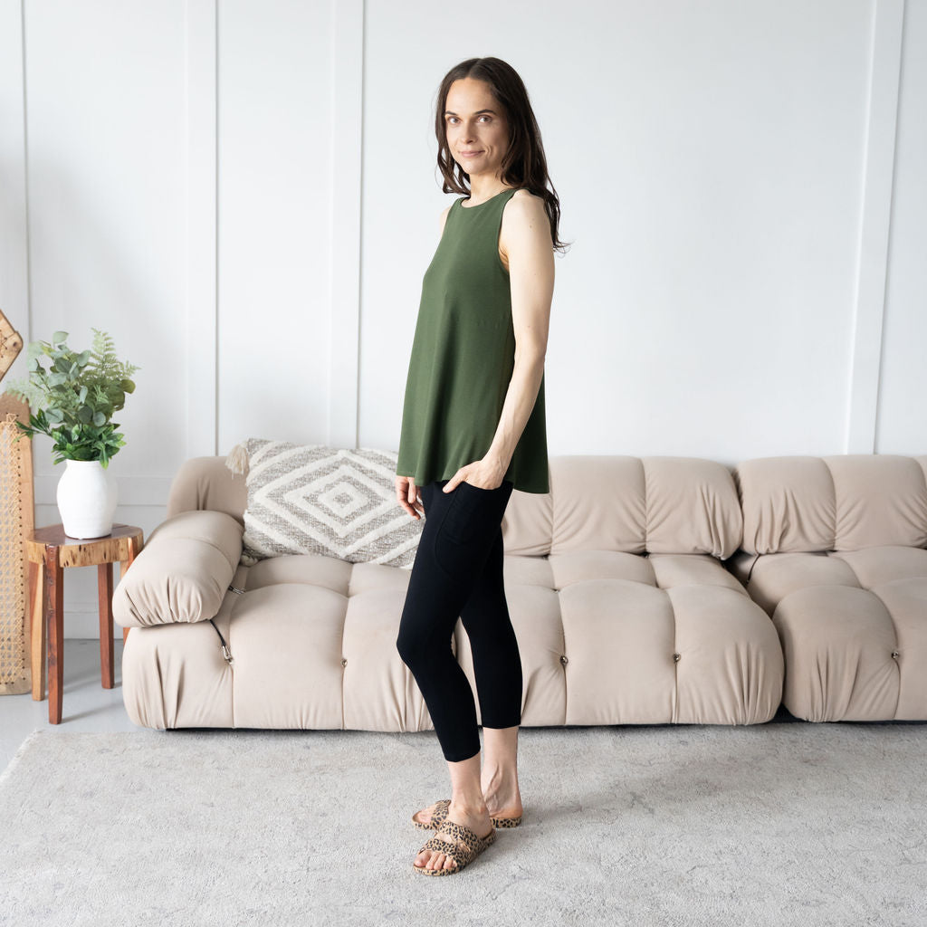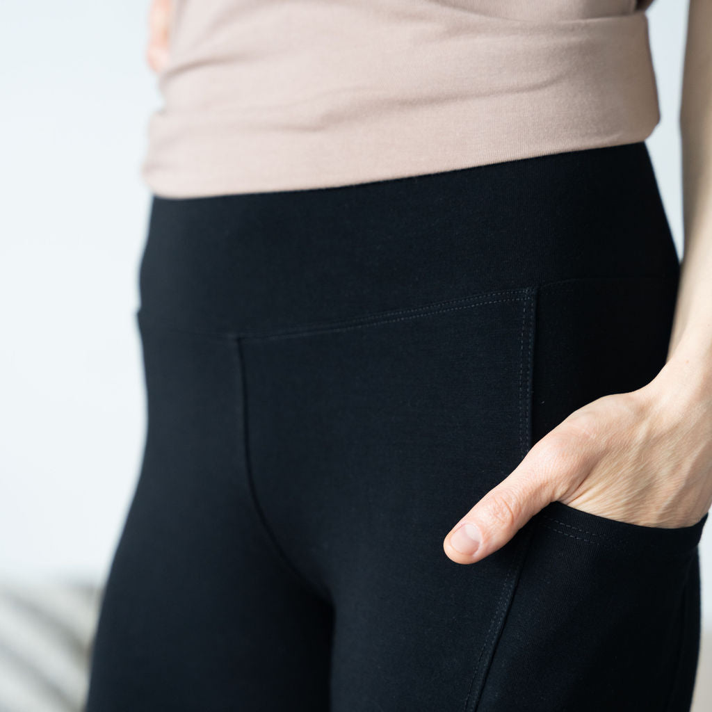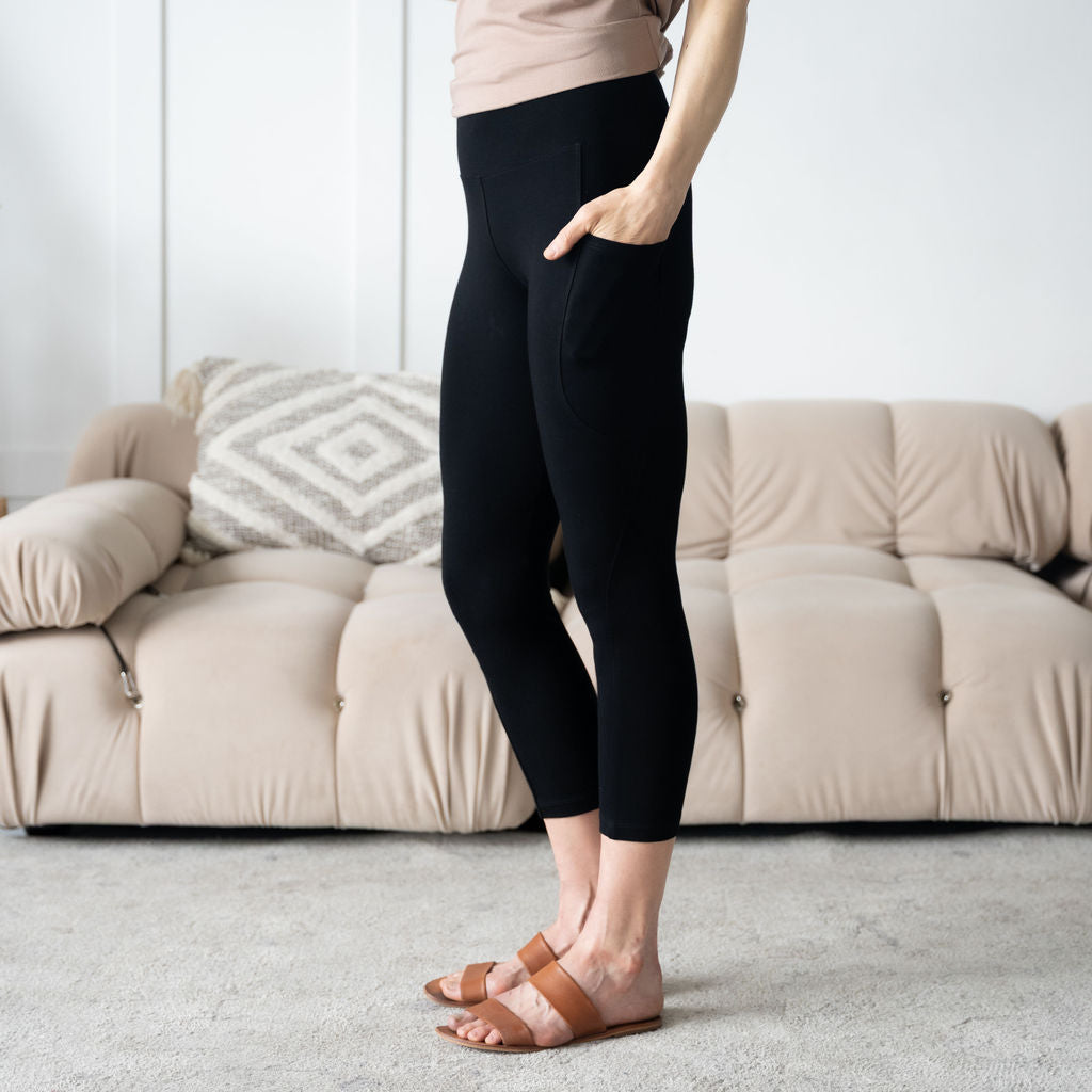 From office to errands to yoga—these cropped leggings are up for it all. Made from breathable 4-way stretch bamboo with a sleek high-rise waist and two side pockets, they deliver comfort and function without compromise. A capsule wardrobe essential, thoughtfully sewn in Toronto.