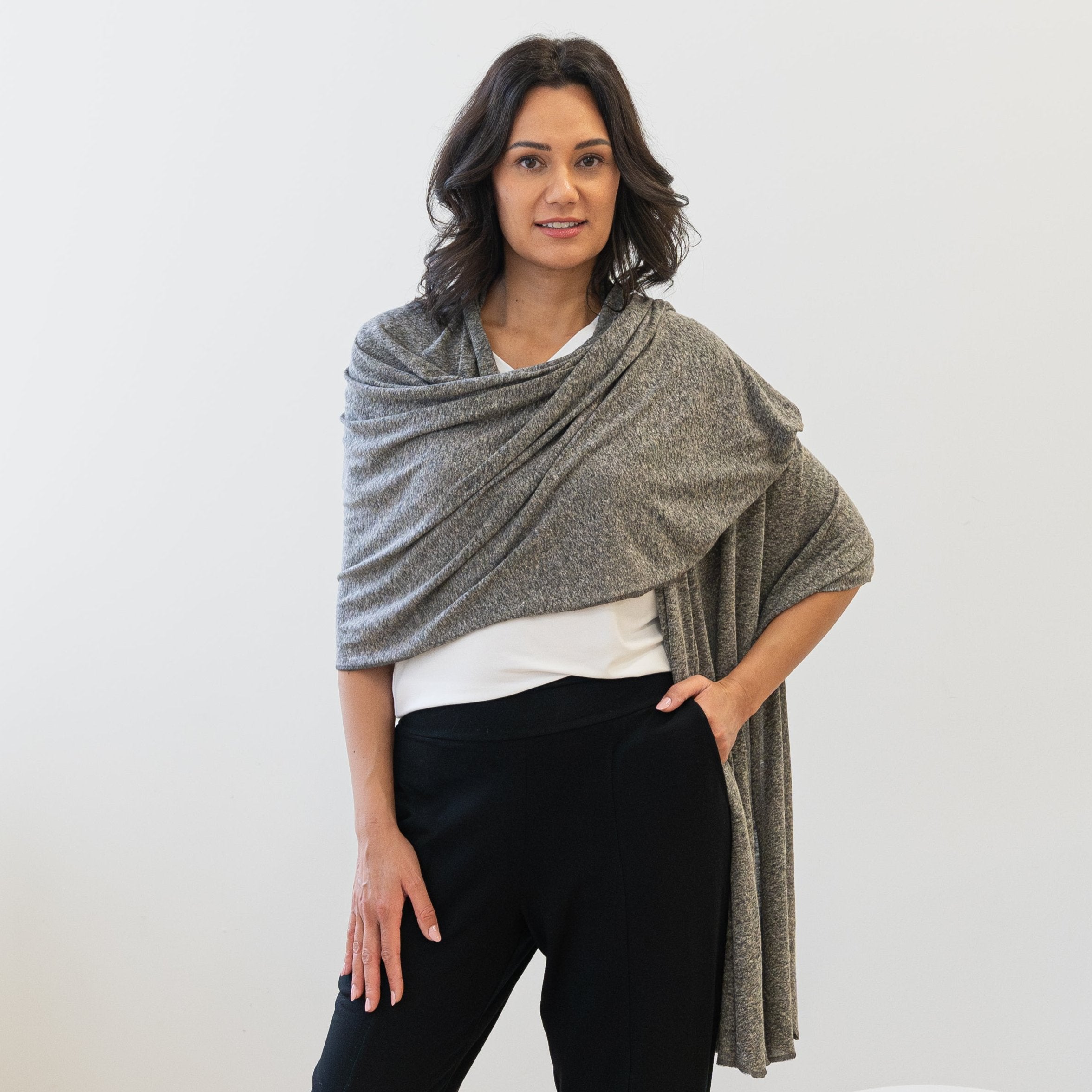The Jetsetter Wrap is your cozy, stylish travel essential. Crafted from an ultra-soft Tencel™ Lyocell and Merino Wool knit, it’s breathable, thermoregulating, and has a hint of stretch. Oversized yet lightweight, it transforms from scarf to shawl, blanket, or wrap. Packable and versatile, it’s perfect for adventures near and far.