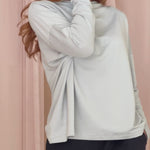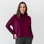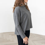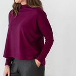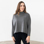 Meet the sweatshirt that does it all. Modern boxy fit, buttery-soft lightweight French Terry, and a mock neck for added elegance. Perfect for layering or wearing solo, with a high-low hem for that extra coverage we all love. Cozy never looked so good.
