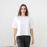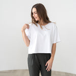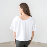Looking for a wardrobe essential tee that’s both comfortable and stylish? Meet The Everyday Boxy Tee. It's made from a soft bamboo-cotton blend fabric, designed with a flowy fit, longer short sleeves, and a reversible neckline for added versatility. It’s effortlessly stylish, making it the perfect capsule wardrobe piece—easy to mix, match, and style.