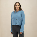 The Cardigan has a classic, boxy fit with flared sleeves. Sleeves can be easily hemmed if needed.