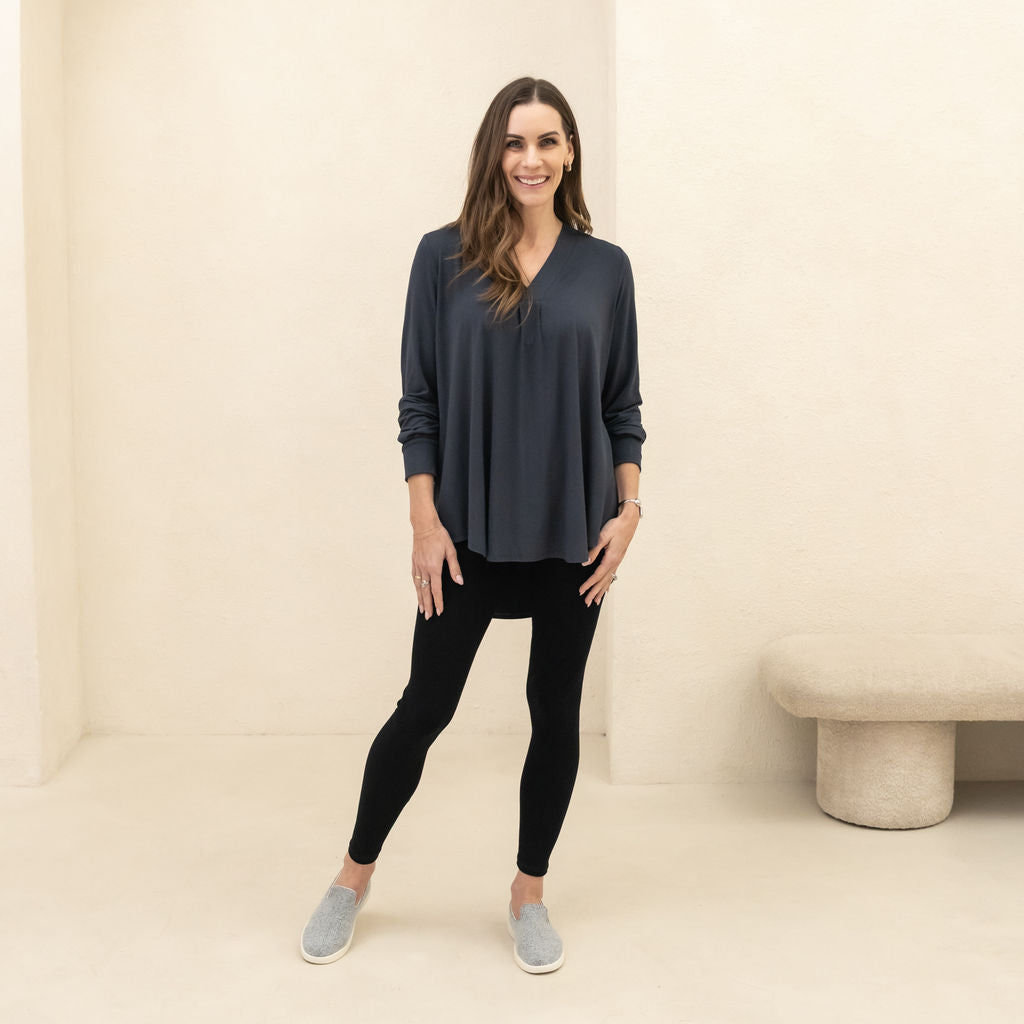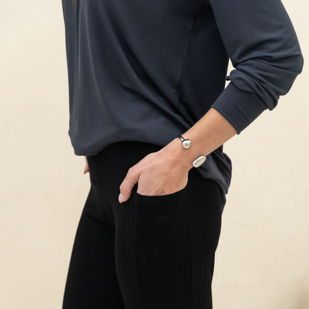 We use premium, breathable fabrics and design pieces to last—so they keep their shape, softness, and polish wear after wear. Cut + sewn in Canada in small batches for craftsmanship you can count on.