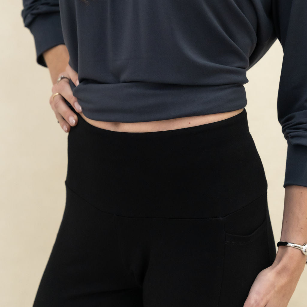 An elevated legging—built to maximize your comfort. High-waisted and incredibly soft with a wide, elastic-free waistband that gently holds you in without pinching. Two side pockets, a gusset, no outer seams, and flatlock inner-thigh seams keep you comfy all-day long. An elevated, polyester-free legging you’ll wear on repeat.