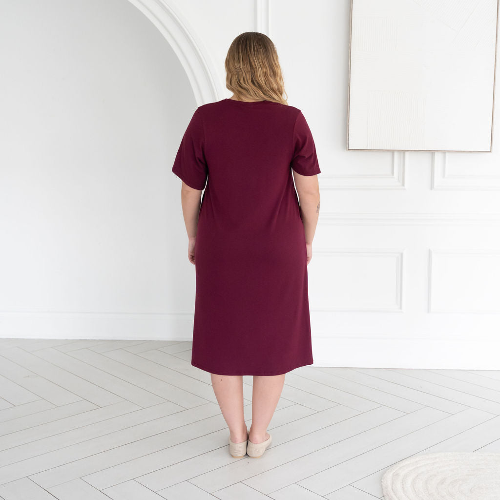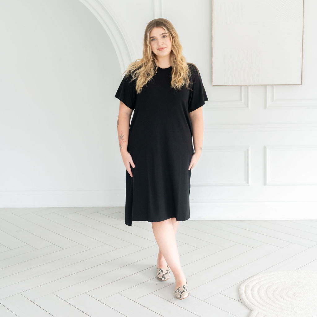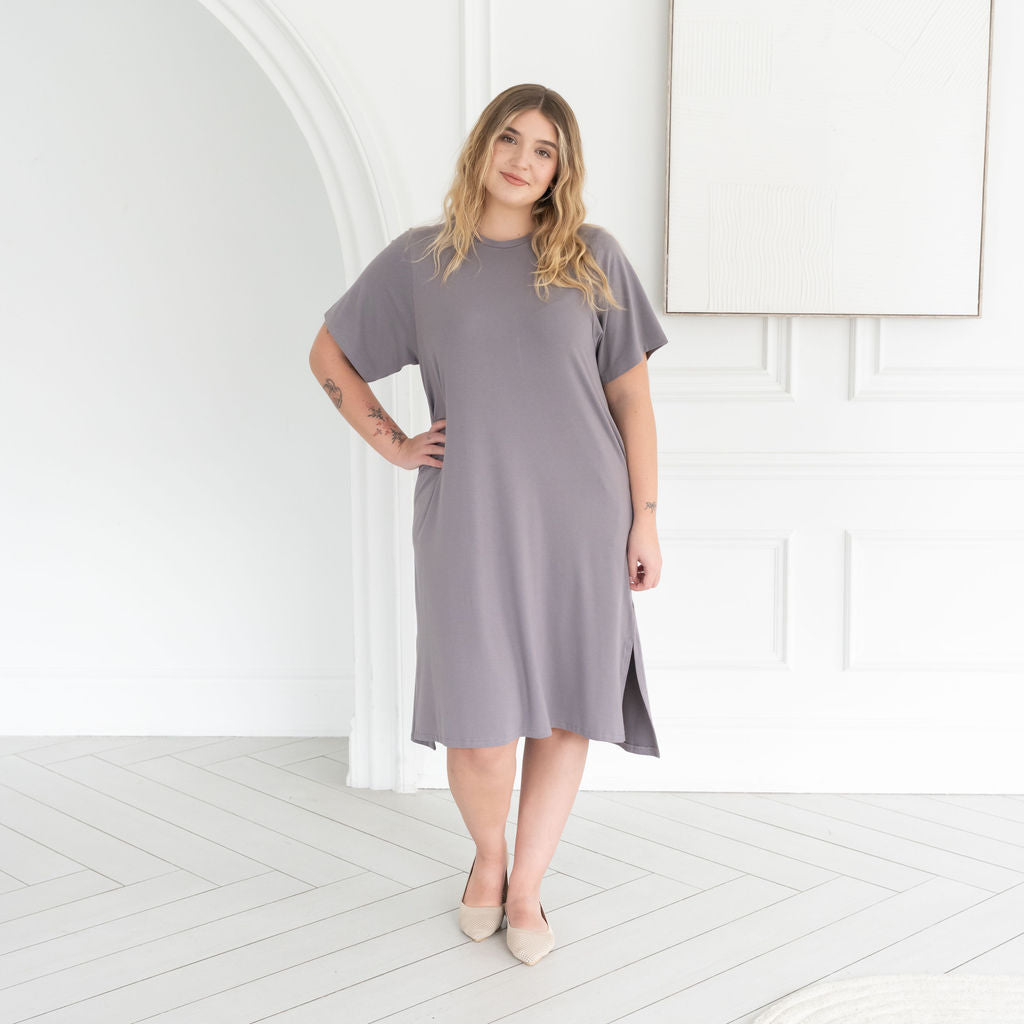 • Classic T-shirt dress silhouette with a flattering, relaxed fit
