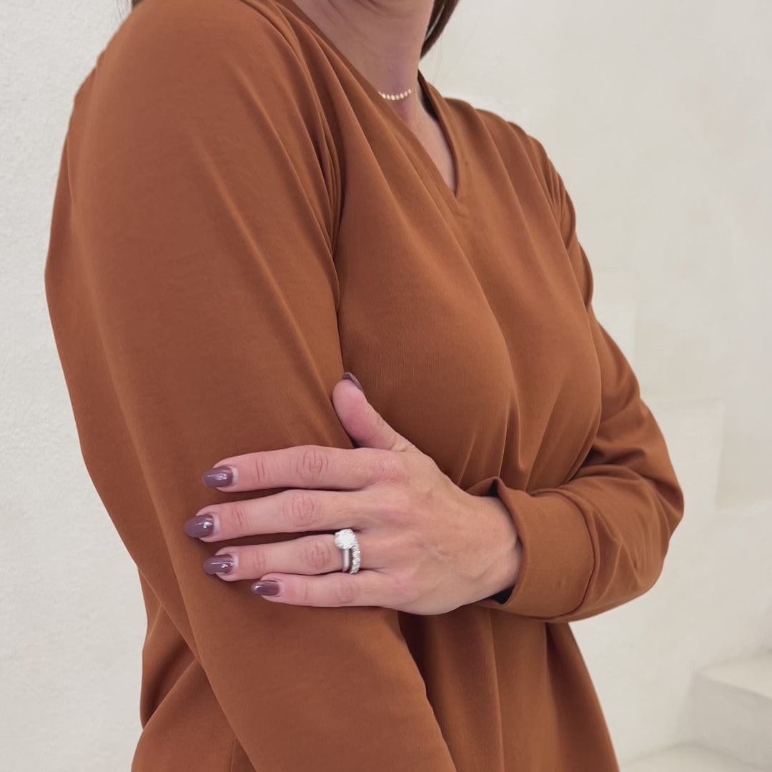 If you own our Comfy Dress Shirt, or Going Places Mock Neck, we recommend sticking with the same size. This top will not shrink on wash.