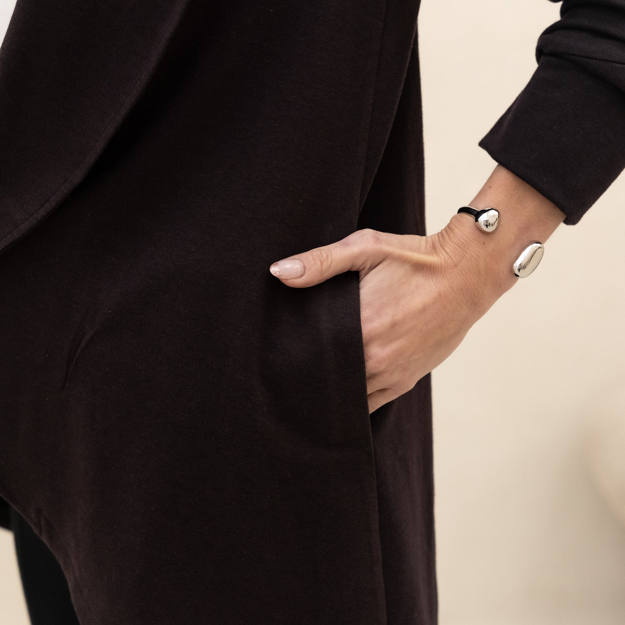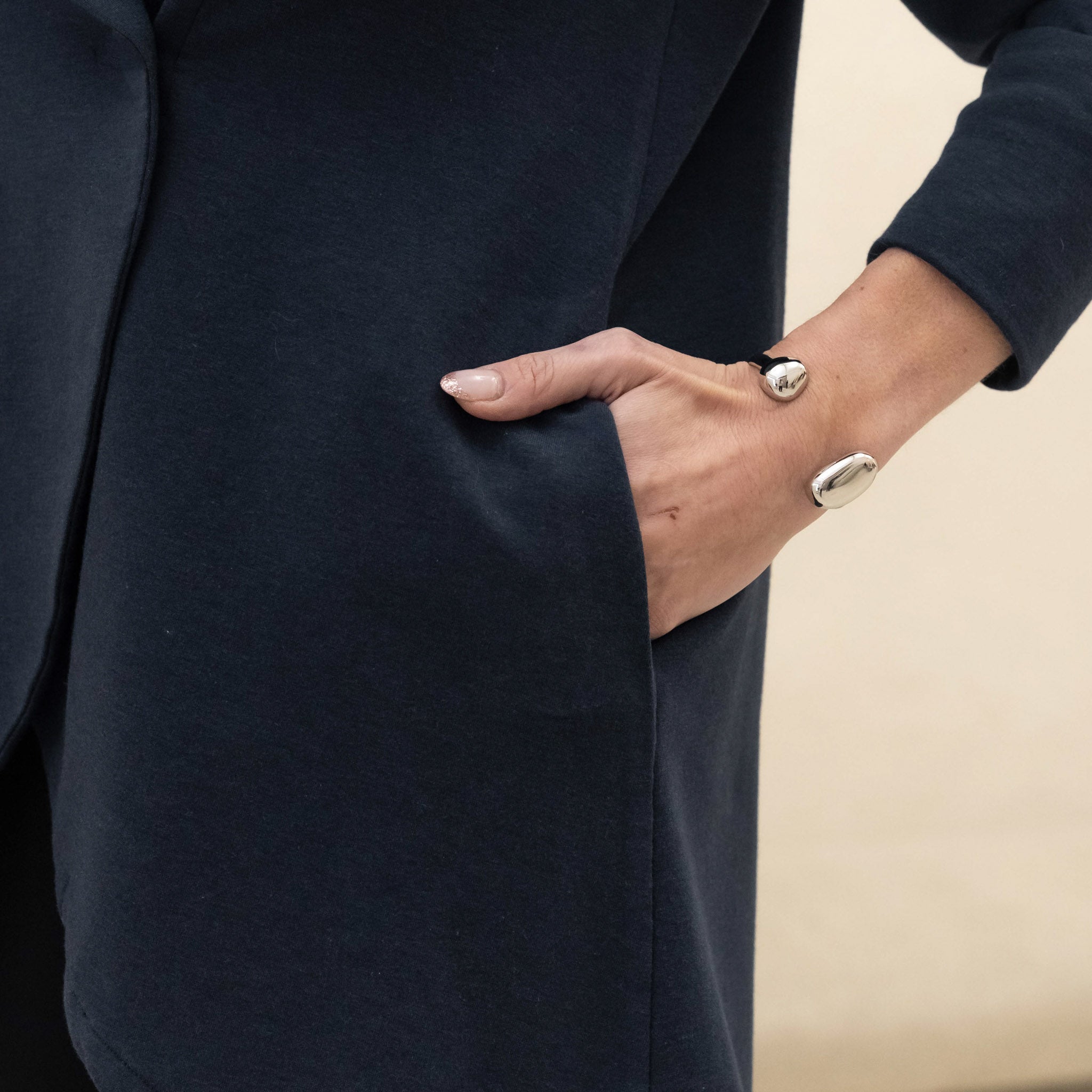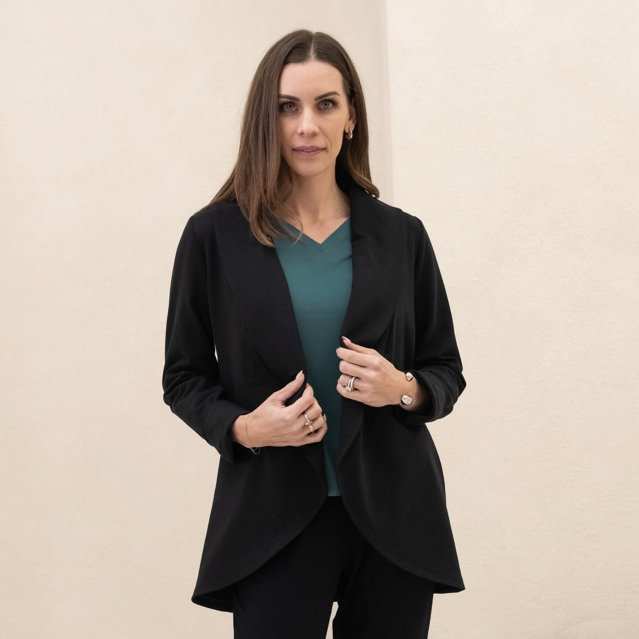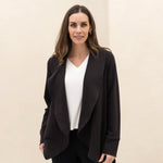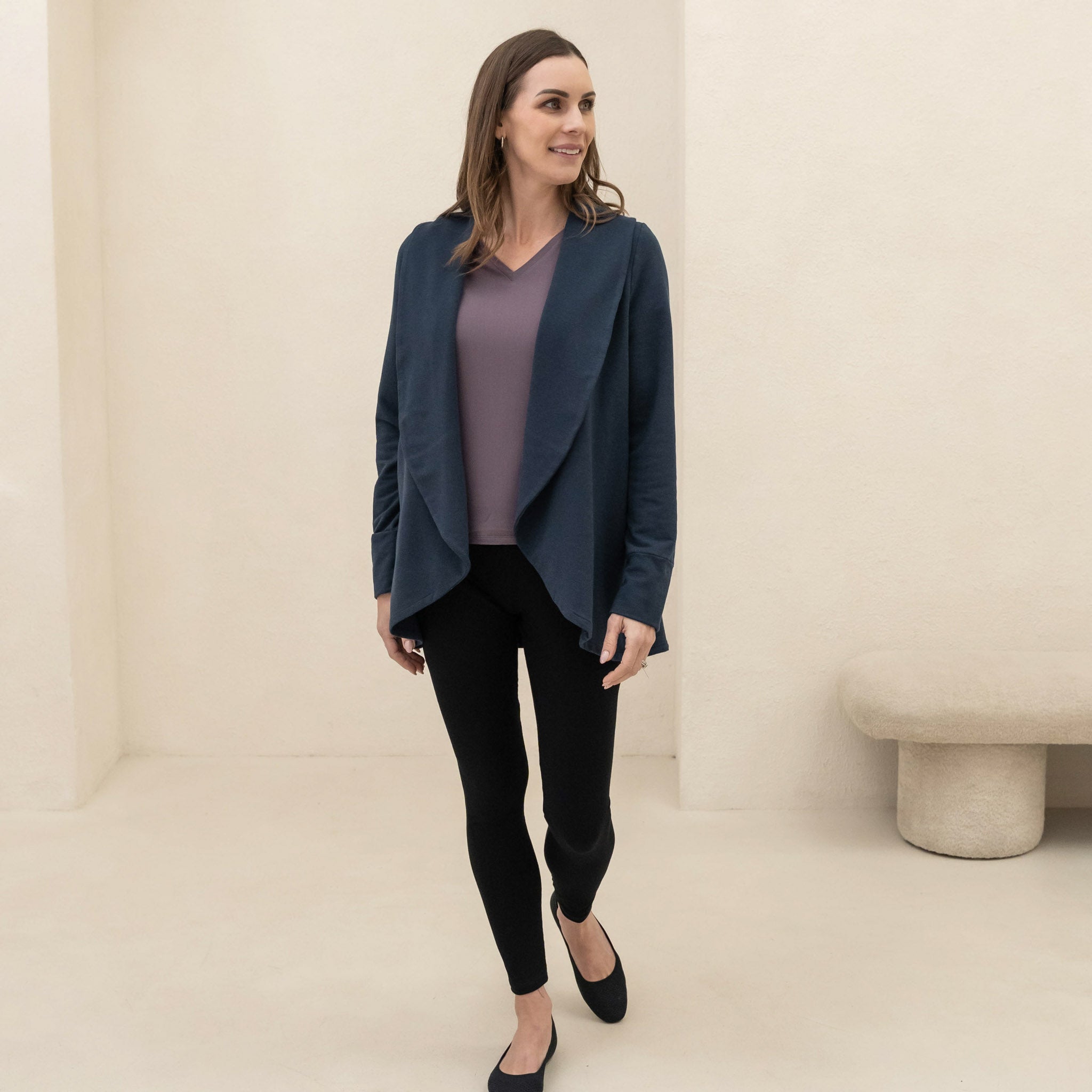 Meet the blazer that feels like your favourite sweatshirt. Made from soft TENCEL™️ Lyocell Cotton French Terry, it features a shawl-style lapel, button front, pockets, cuffed sleeves, and a back vent. The relaxed boyfriend fit offers polished comfort with easy coverage—perfect for work, travel, and everything after.