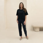 All styles are ethically made in Toronto from heavyweight MicroModal Lycra jersey—smooth, stretchy, and sustainably produced. Each pair features deep pockets (including a secure zippered pocket for your phone or passport), a wide contoured waistband for comfort, and thoughtful details to suit your style.