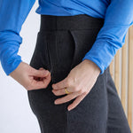 All styles are ethically made in Toronto from heavyweight MicroModal Lycra jersey—smooth, stretchy, and sustainably produced. Each pair features deep pockets (including a secure zippered pocket for your phone or passport), a wide contoured waistband for comfort, and thoughtful details to suit your style.